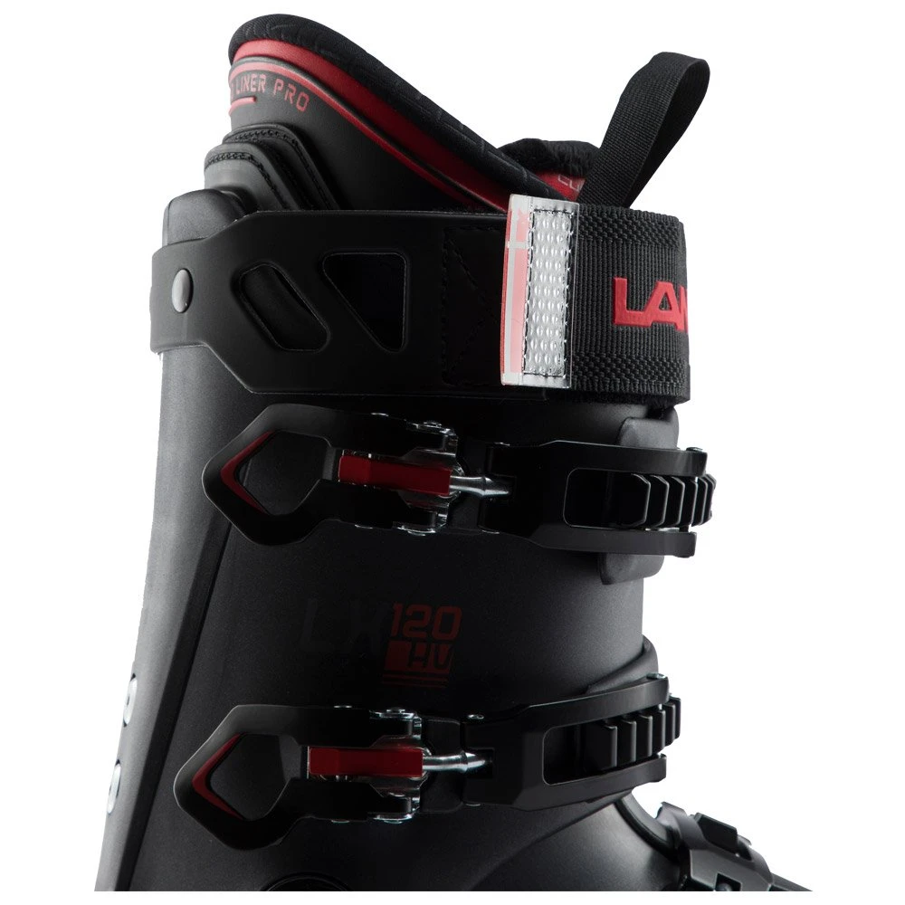 La Lange LX 120 HV GW est une chaussure de ski très sportive conçue pour le ski de piste et all-mountain. Fabriquée dans une coque en polyuréthane, elle profite de la technologie Dual Core qui garantit efficacité, puissance et précision. Le flex de 120, associé au serrage avec quatre crochets Alu Race et un Power Strap de 45 mm, assurent beaucoup de performance et un excellent maintien du pied, de quoi envoyer fort dans les appuis pour des descentes engagées dans toute la station. Performante oui, mais sans pour autant devoir sacrifier le confort. Le volume chaussant de 102 mm permet aux skieurs avec des pieds larges de ne pas se sentir contraints et le chausson Dual 3D Pro enveloppe bien la morphologie du pied tout en participant à la performance en améliorant la précision et la transmission de l’énergie. Enfin, la semelle Grip Walk apporte du confort de marche en facilitant le déroulé du pied, petit détail qui a son importance quand on déambule en bas de la station avec les skis sur l’épaule.