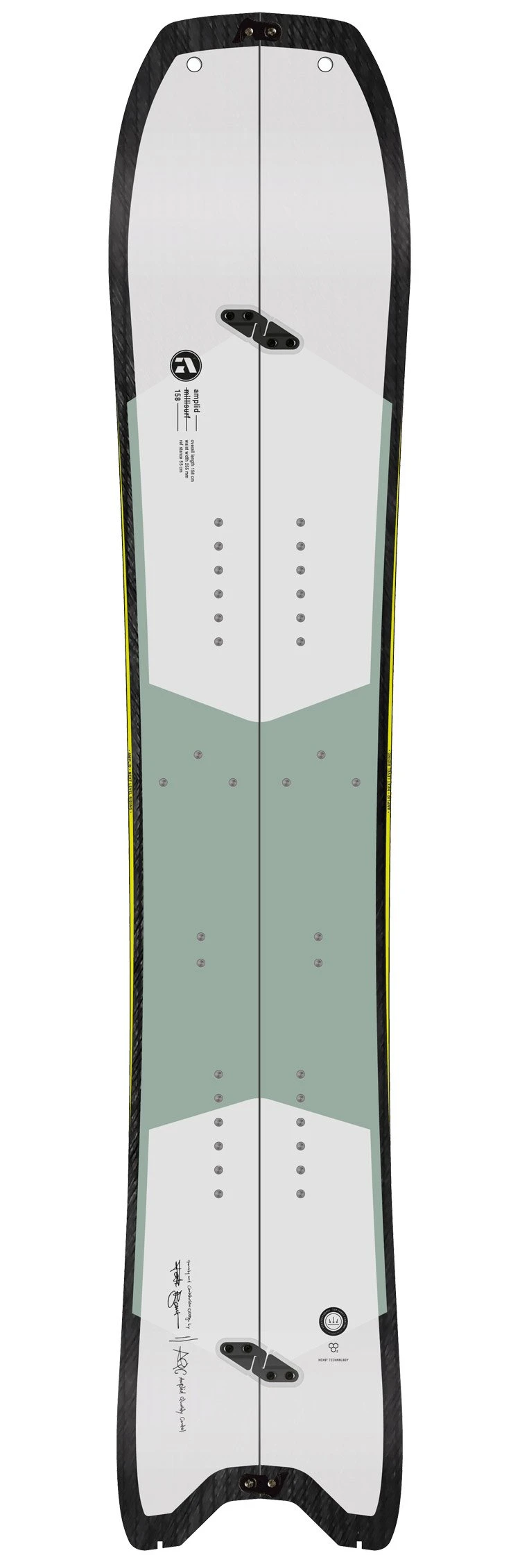 La Milisurf utilise le meilleur de la technologie Amplid. Elle profite du noyau BBP, avec du balsa, du bouleau et du paulownia, ainsi que d’un tressage en carbone Full Carbon Jacket permettant d’obtenir un ratio poids/puissance imbattable. Ainsi, elle est ultra légère pour avaler du D+ à grande vitesse, tout en étant assez puissante et rigide en torsion pour offrir de solides performances à la descente. Son shape est avant tout pensé pour la poudreuse, avec un nose de forme convexe qui améliore la déjauge et la fluidité des entrées de courbe, un fish tail bien resserré, ainsi qu’une position des pieds légèrement reculée. On prend facilement de la hauteur dans la profonde et on enchaîne les virages avec une grande fluidité. Le cambre classique bien long permet également d’avoir une accroche solide, que cela soit lors des montées en conversion ou des passages sur neige dure. Finalement, on obtient une splitboard incroyable dans la fraîche mais qui sait aussi varier les conditions, avec une vraie appétence pour la courbe, une belle stabilité et beaucoup de légèreté.