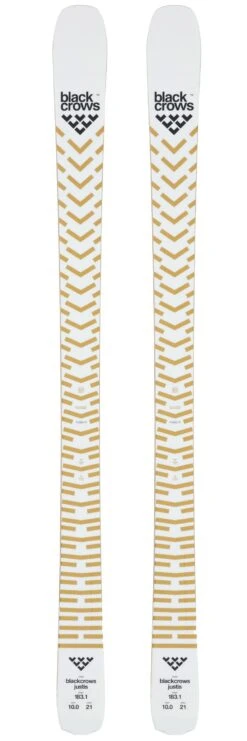 Le Black Crows Justis est un ski all mountain large, avec 100 mm au patin. Sa construction est vraiment puissante, il est bien chargé avec son noyau en peuplier renforcé de fibres de verre et d’une double plaque de titanal. Il pèse 2 kg par ski en taille 177,4 cm mais a de quoi tenir les conduites les plus engagées dans une grande variété de terrains et de conditions.