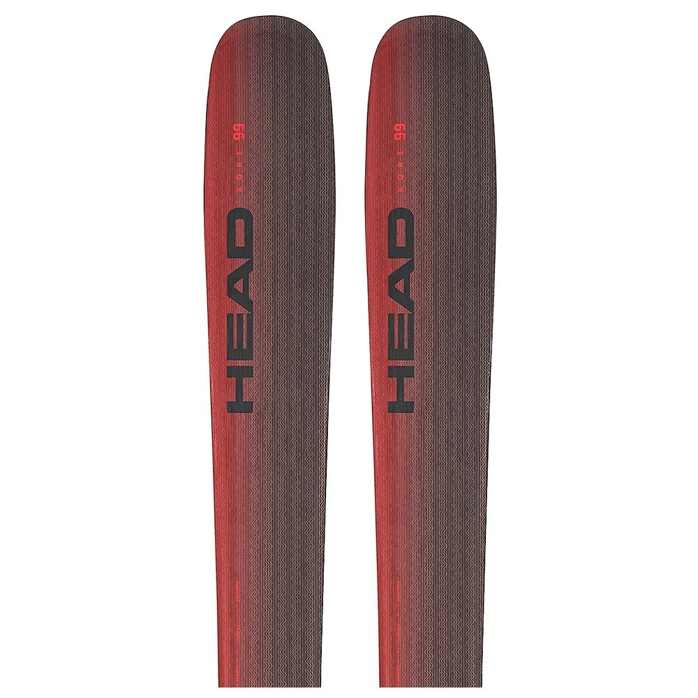 Les skis de freeride Kore de la marque Head sont réputés pour leur jouabilité et leur maniabilité. Parmi cette série, le ski Kore 99 se situe en milieu de gamme en termes de polyvalence : avec ses 99 mm au patin, il est plus maniable que son cousin le Kore 111 et plus à l’aise en poudreuse que le Kore 87.