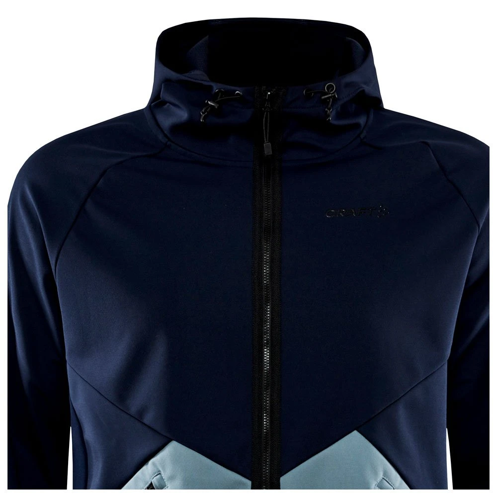 La veste Craft Glide Hood Jkt M est conçue pour les entrainements par mauvais temps grâce à son tissu coupe-vent et imperméable ainsi que sa capuche réglable. Elle reste idéale pour les intensités légères à modérées grâce à des panneaux de ventilation sur les côtés et sous les manches. Votre nouvel allié lors des jours de tempête !